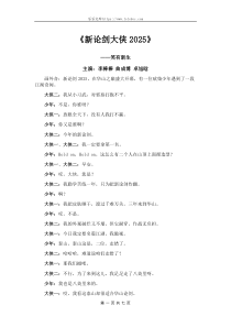 笑有新生小品《新论剑2025》剧本台词,《新论剑2025》大侠二:既然这样。 少年:撤吧。 大侠一:比比别的。 少年:啊? 大侠二:嗯,比比谁教的徒弟更优秀。 少年:嘿嘿,就你俩这样还能有徒弟呢。 大侠一、大侠二:嗯?...