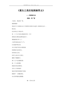 何广智脱口秀《重生之我在短剧演男主》剧本台词,开始我还很紧张, 我也没学过表演, 这谁能指导我一下呀? 拍到一半,谁能指导我呀? 后来表演指导又来指导我, 说我这个不对, 我说给你三秒钟从我眼前消失。 虽然短剧...