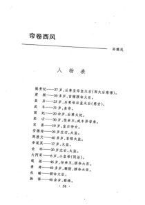 话剧《帘卷西风》剧本,〔前场几日后。 〔烟波致爽殿。 〔景同第一场。 〔载垣怒冲冲走进烟波致爽殿,景寿追来,顾命大臣 戊、已、庚、辛随至。 景 寿 怡亲王!不可莽撞! 载 垣 我是两朝顾命大臣了,谁敢把我怎么着? 〔陈胜文急...