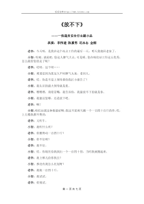 乐乐文库https://www.leledoc.com第一页共七页《《放不下放不下》》————一快递员安全行主题小品一快递员安全行主题小品表演:李伟建表演:李伟建陈嘉男陈嘉男迟永志迟永志金桐金桐老李:老李:今天呀,是我在这个站点工作的最后一天,...