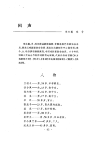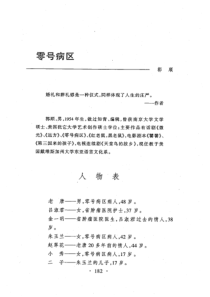 话剧《零号病区》剧本,〔几天后。早晨六七点钟。 〔随访病室的牌子醒目地挂在舞台左侧。 〔渐渐地,病人们有的独自,有的在他人搀扶下,开始 从四处缓缓走来。很快门口便聚集了许多人。大家 沉默地散坐在门口,没有人发出一点声响。 ...