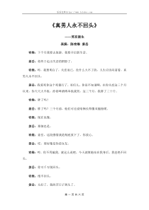 笑有新生小品《真男人永不回头》剧本台词,姜岳:你还真是个小天才。 宥维:那小天才回头吃饭喽。 姜岳:你回头她也不会跟你吃饭的。 (再次响起《囚鸟》) 姜岳:难受吧,咱哭一会儿,好不好?没有必要,宥维呀,(宥维撕开抱枕...