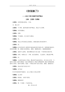 “2006天津卫视新年相声晚会”高晓攀尤宪超相声《敬您一杯酒》剧本台词,高晓攀:二八二九三十一,宫廷御液酒。 尤宪超:一百八一杯。 高晓攀:这酒怎么样? 尤宪超:听我给你吹。 高晓攀:啊,吹。 尤宪超:啊,吹。 合...