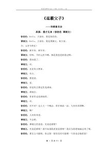 漫才兄弟脱口秀《逗霸父子》剧本台词,徐浩伦:你记得小时候不?你最喜欢跟爸爸一起玩了。 谭湘文:嗯。 徐浩伦:骑马。 谭湘文:骑高高。 徐浩伦:对吧? 谭湘文:对。 徐浩伦:六岁的时候天天让我骑你头上。 谭湘文:...